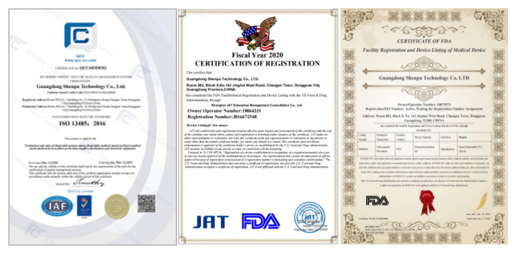 Disposable Medical 聚氯乙烯 Gloves certificate: